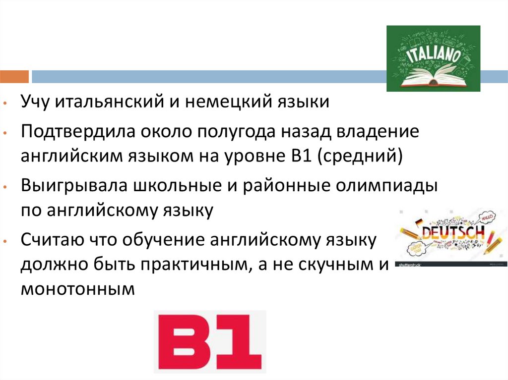 Учу итальянский и немецкий языки• Подтвердила около полугода назад владение
