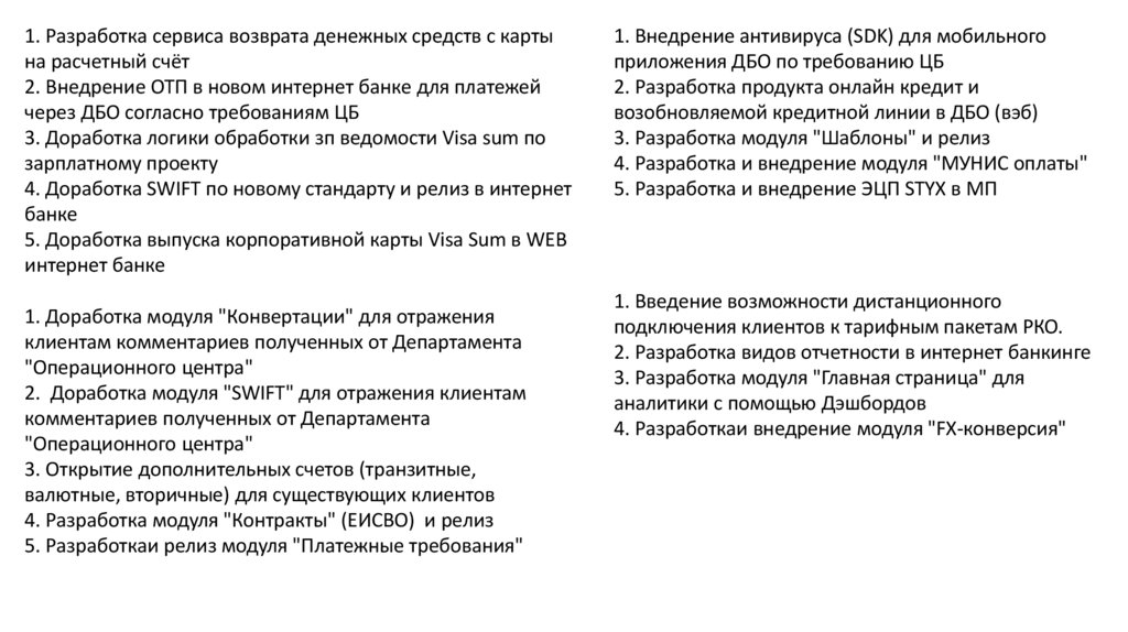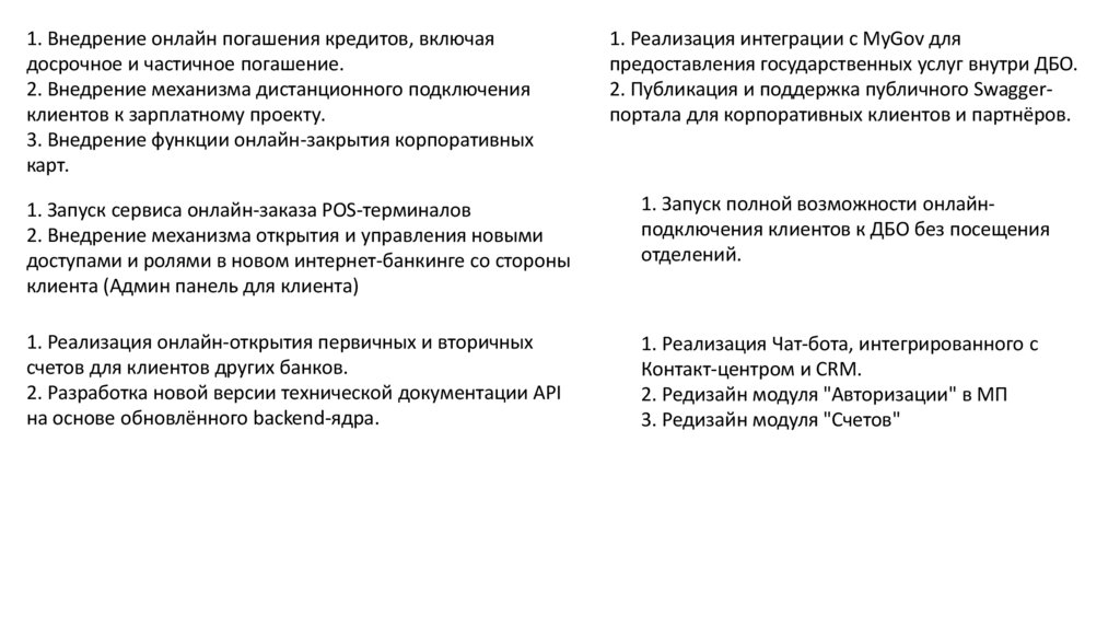 1. Внедрение онлайн погашения кредитов, включаядосрочное и частичное погашение.