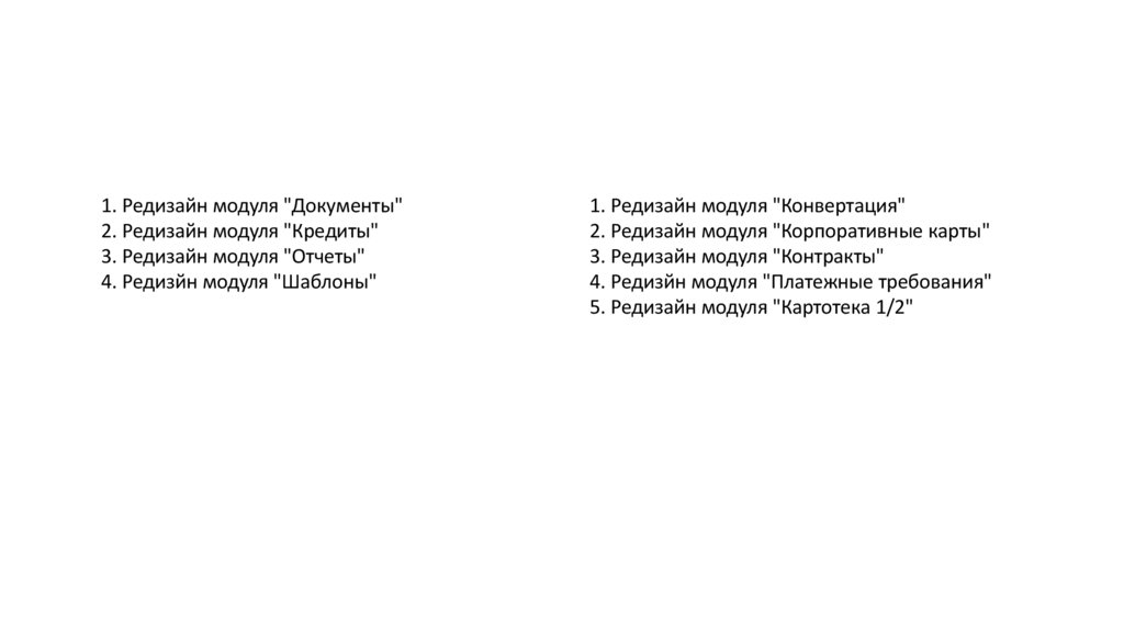 1. Редизайн модуля "Документы"2. Редизайн модуля "Кредиты"
