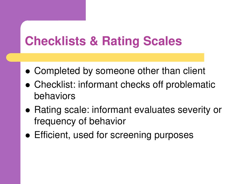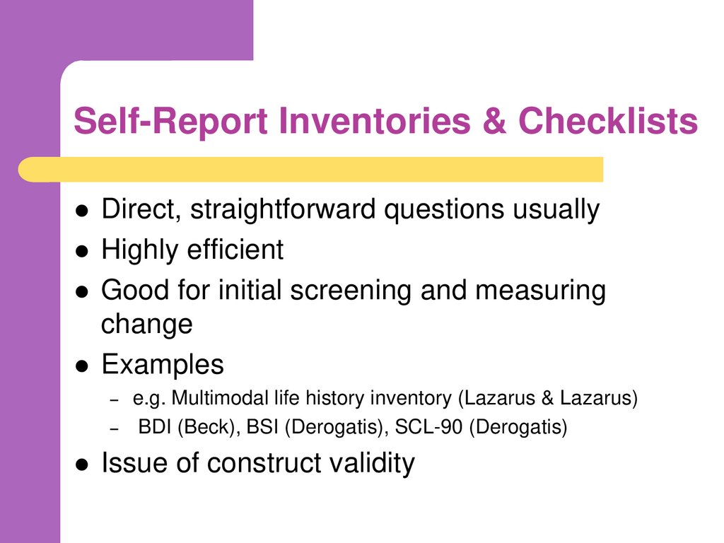 Self-Report Inventories & ChecklistsDirect, straightforward questions usually