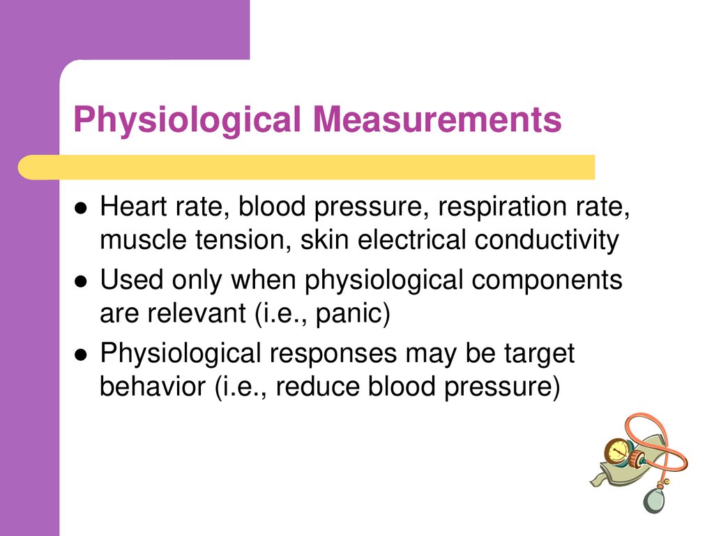 Physiological MeasurementsHeart rate, blood pressure, respiration rate,