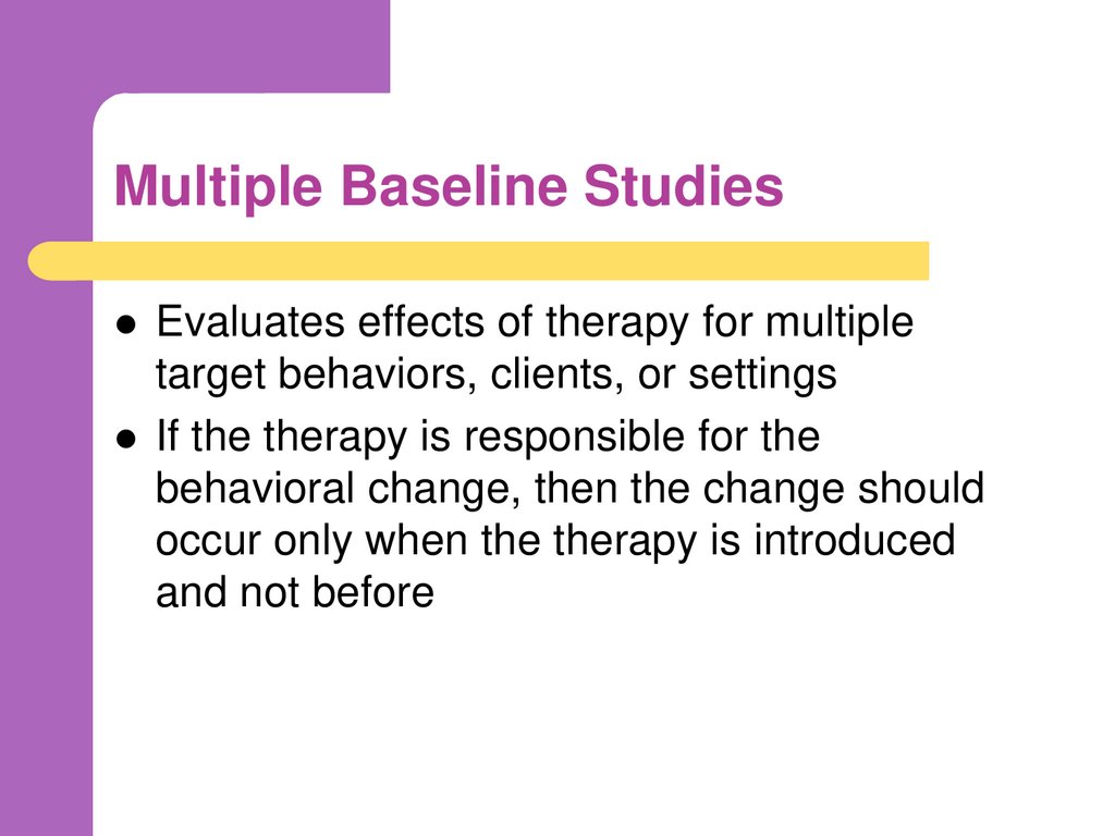 Multiple Baseline StudiesEvaluates effects of therapy for multiple