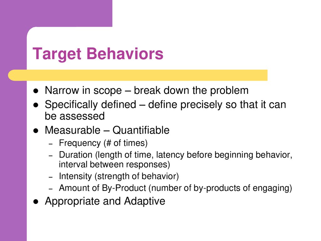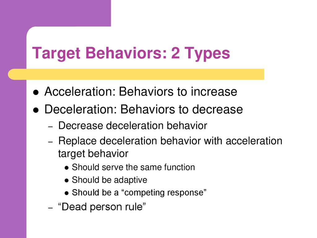 Target Behaviors: 2 TypesAcceleration: Behaviors to increase