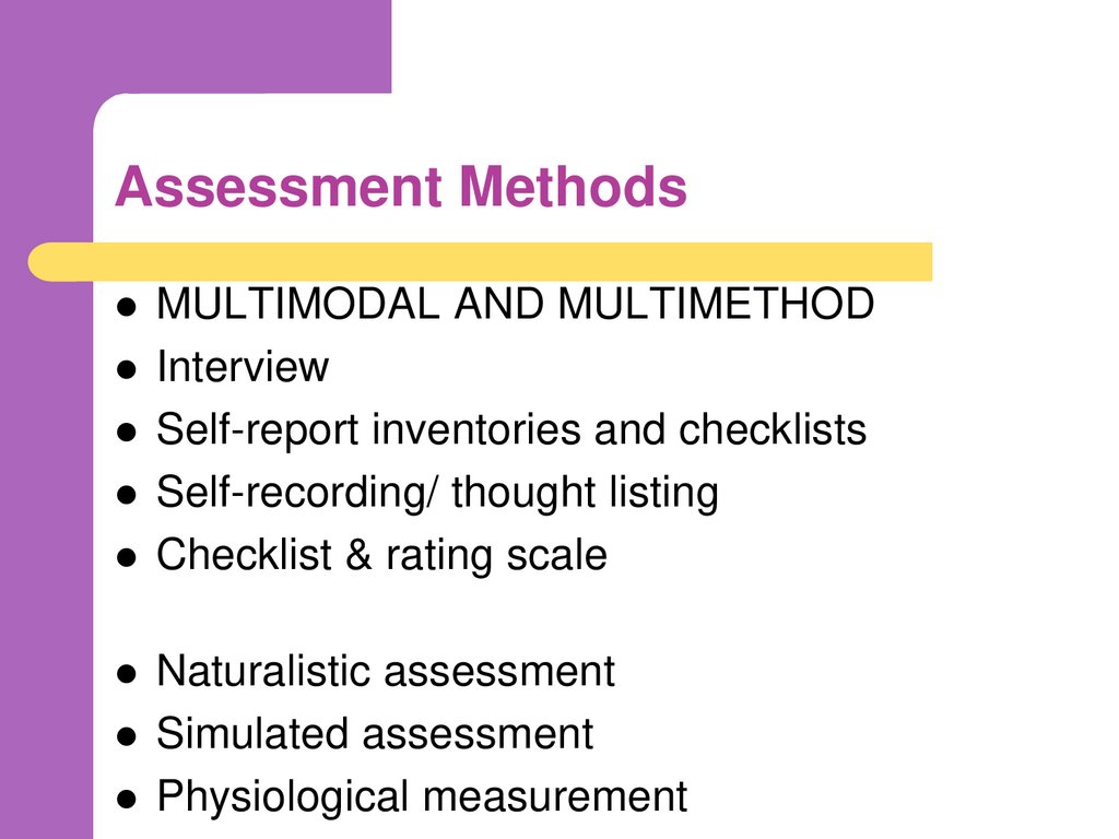 Assessment MethodsMULTIMODAL AND MULTIMETHOD