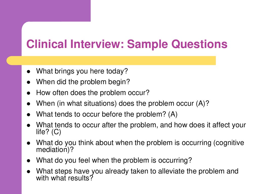 Clinical Interview: Sample QuestionsWhat brings you here today?