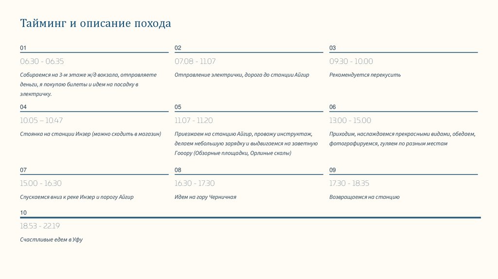 Подробная информация о месте ивремени встречи, посадке, стоимости