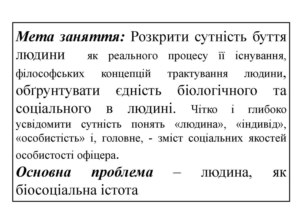 Мета заняття: Розкрити сутність буттялюдини як реального процесу її існування,