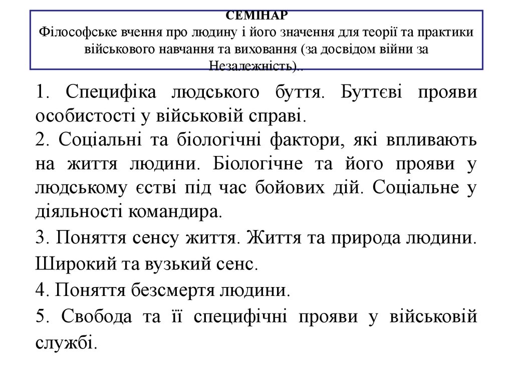 СЕМІНАРФілософське вчення про людину і його значення для теорії та практики