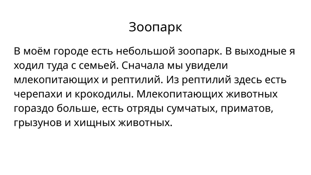 ЗоопаркВ моём городе есть небольшой зоопарк. В выходные я