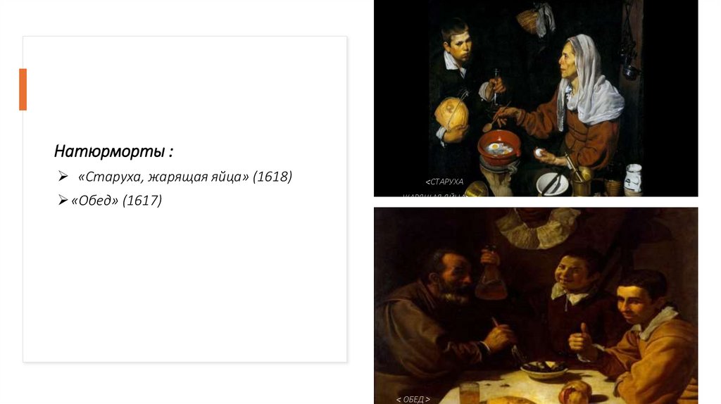 Натюрморты :«Старуха, жарящая яйца» (1618)