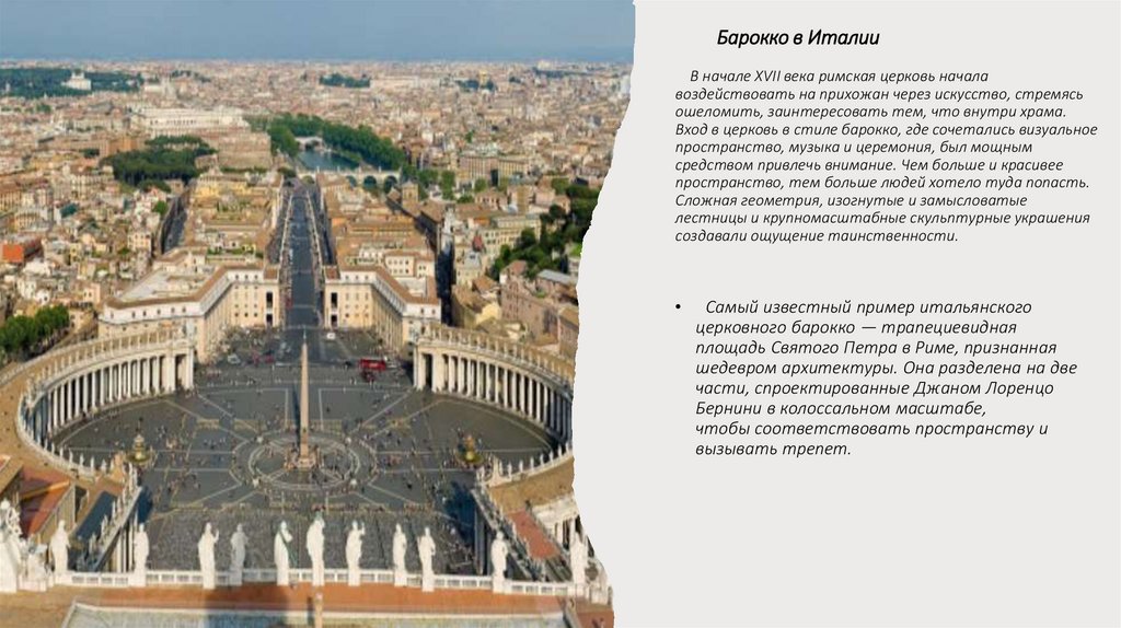 Барокко в ИталииВ начале XVII века римская церковь начала