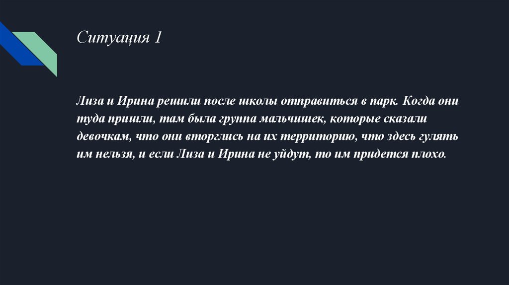 Ситуация 1Лиза и Ирина решили после школы отправиться в парк. Когда они