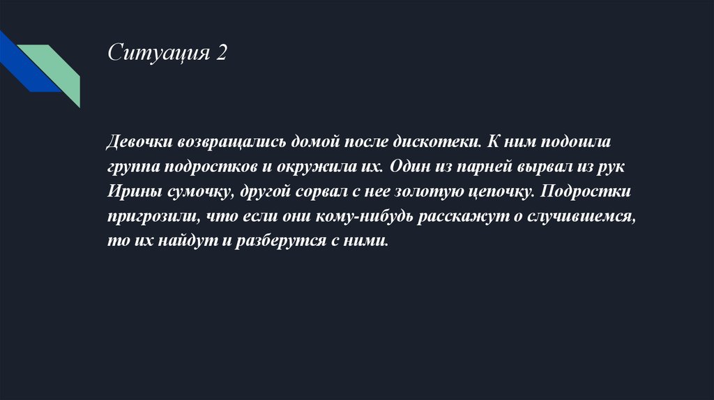Ситуация 2Девочки возвращались домой после дискотеки. К ним подошла
