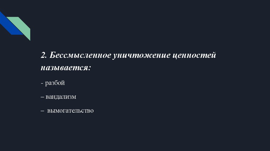2. Бессмысленное уничтожение ценностейназывается: