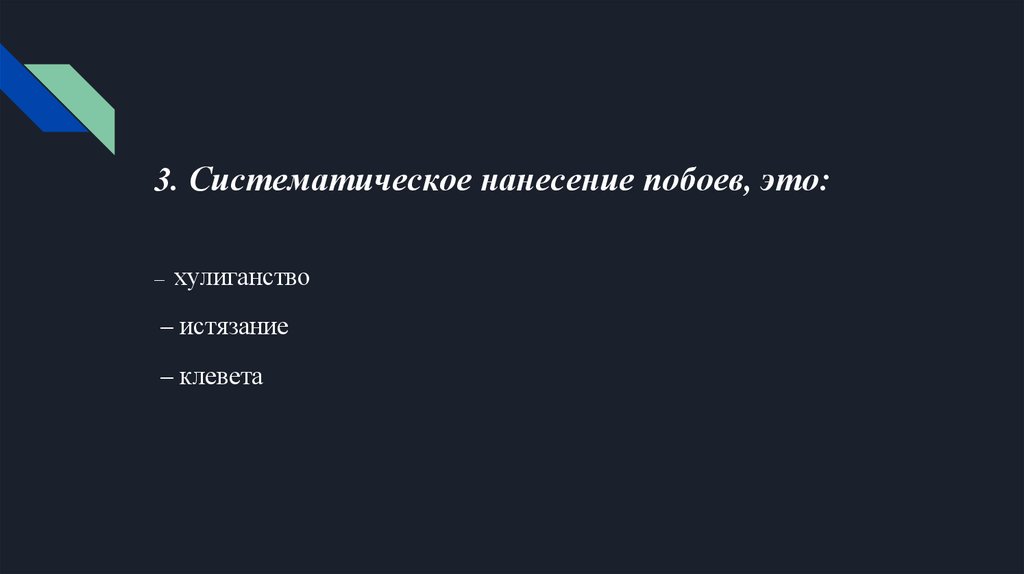 3. Систематическое нанесение побоев, это:– хулиганство