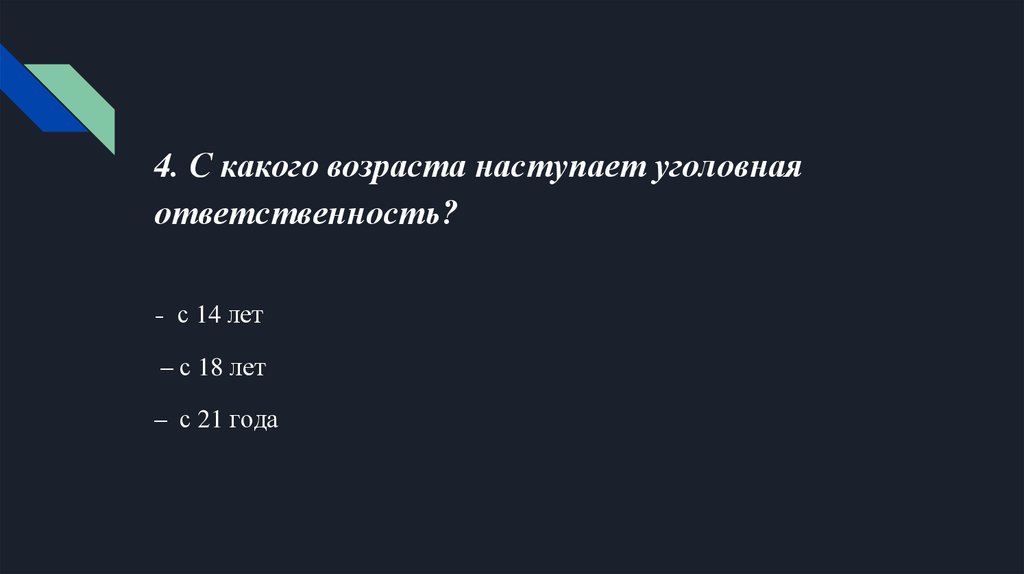 4. С какого возраста наступает yгoловнаяответственность?