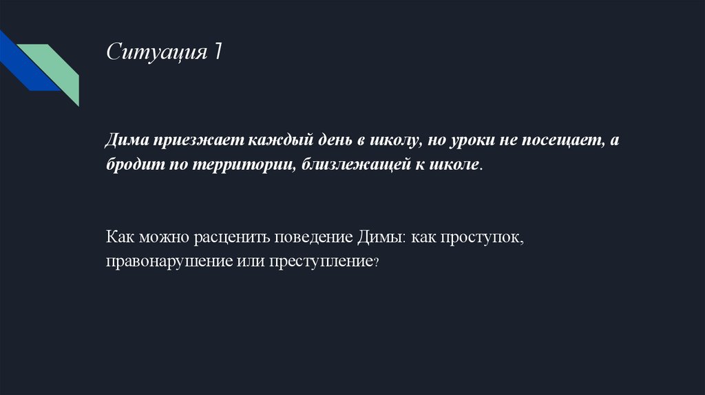 Ситуация 1Дима приезжает каждый день в школу, но уроки не посещает, а