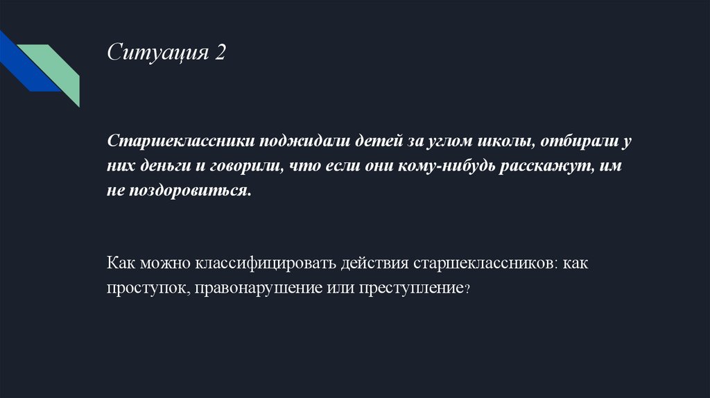 Ситуация 2Старшеклассники поджидали детей за углом школы, отбирали у