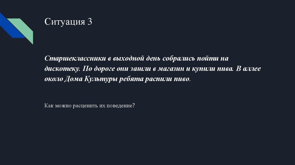 Ситуация 3Старшеклассники в выходной день собрались пойти на