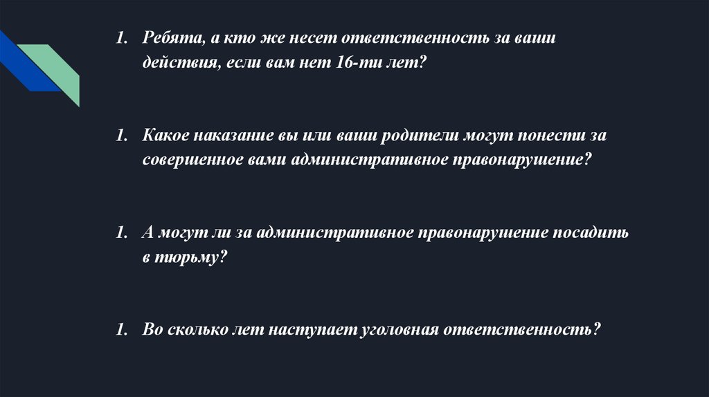 1. Ребята, а кто же несет ответственность за вашидействия, если вам нет 16-ти лет?