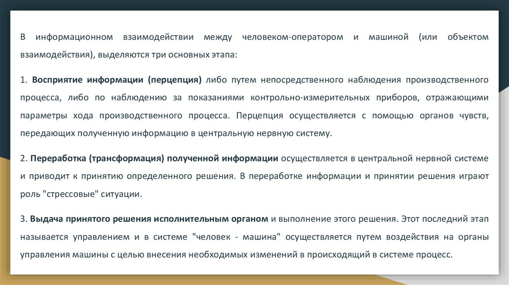 1. Восприятие информации (перцепция) либо путем непосредственного наблюдения производственного