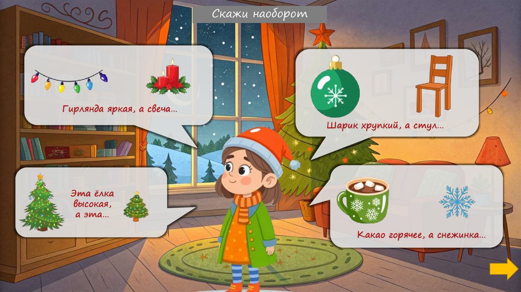Скажи наоборотГирлянда яркая, а свеча…