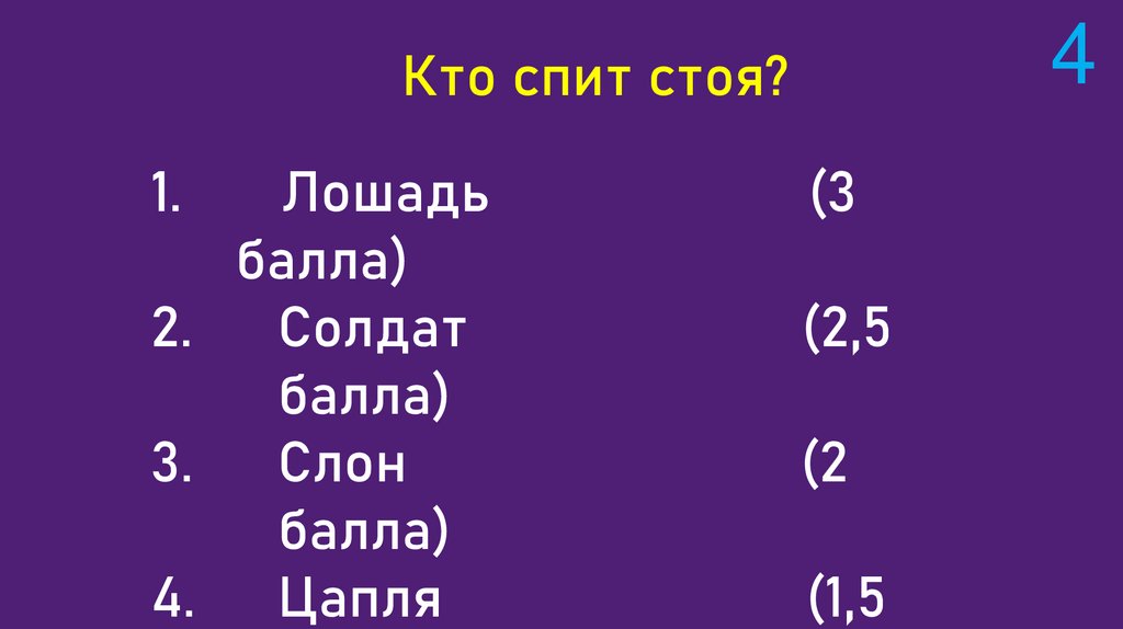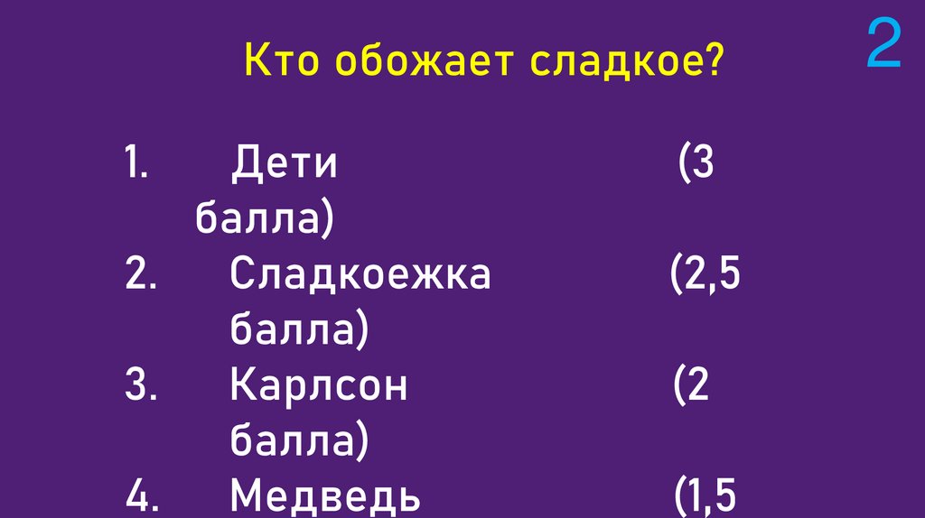 За каждый правильный ответ +1 балл