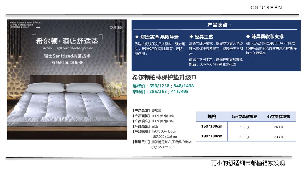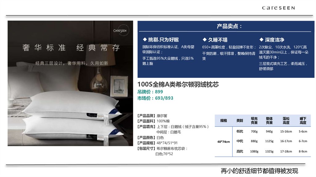 白鹅绒 中间层 2-4cm白鹅毛 高透气的鹅绒 吸湿排汗 无惧湿冷 易打理,更省心 更适合老人孩子的