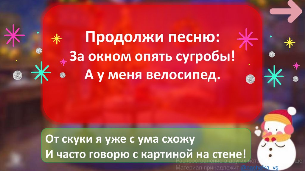 Продолжи песню:За окном опять сугробы!