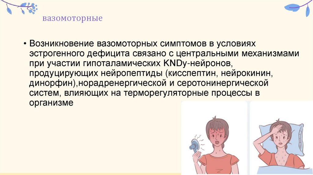 вазомоторные• Возникновение вазомоторных симптомов в условиях