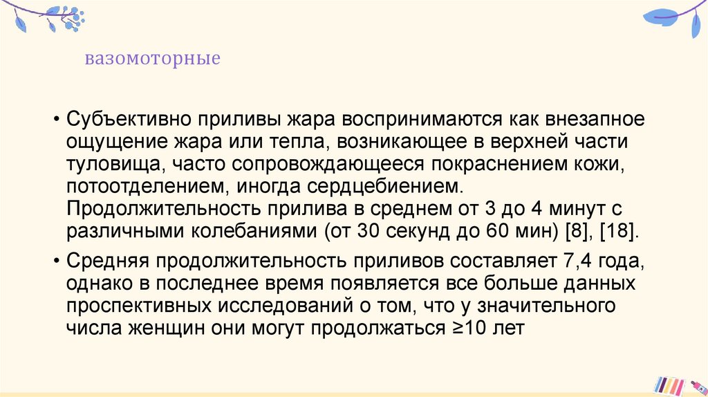 вазомоторные• Субъективно приливы жара воспринимаются как внезапное
