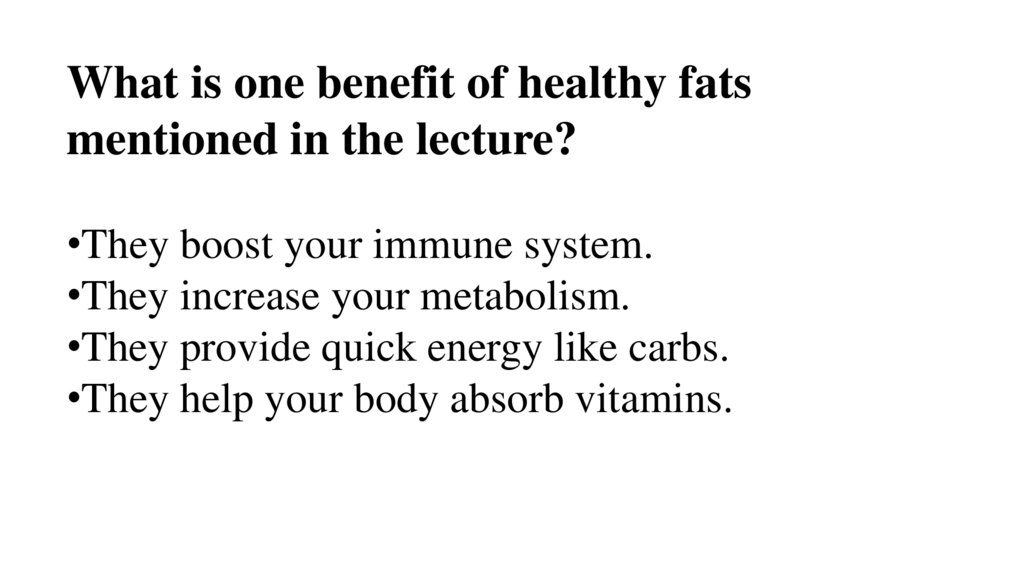What is one benefit of healthy fatsmentioned in the lecture?