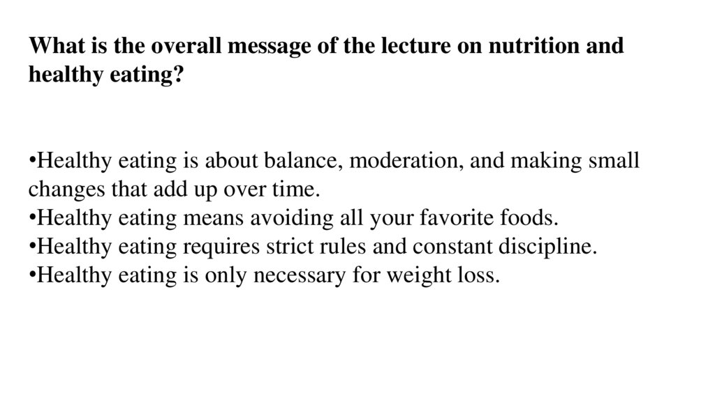 What is the overall message of the lecture on nutrition andhealthy eating?