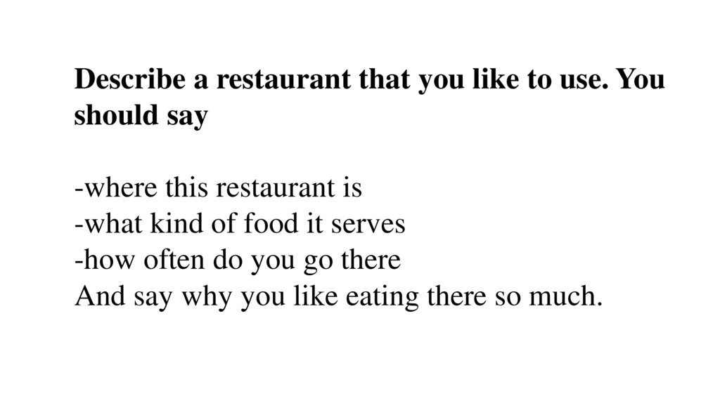 Describe a restaurant that you like to use. Youshould say