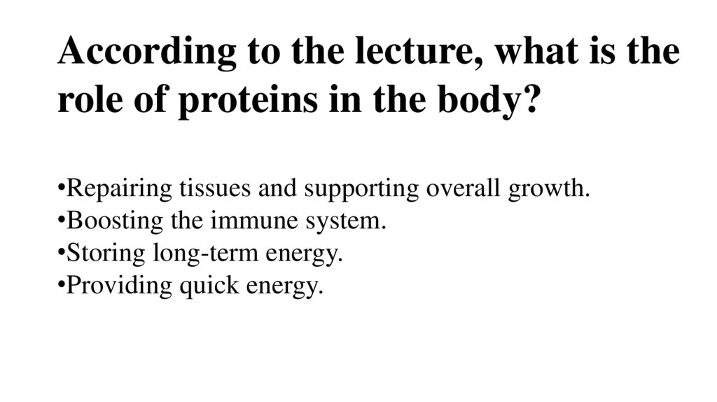 According to the lecture, what is therole of proteins in the body?