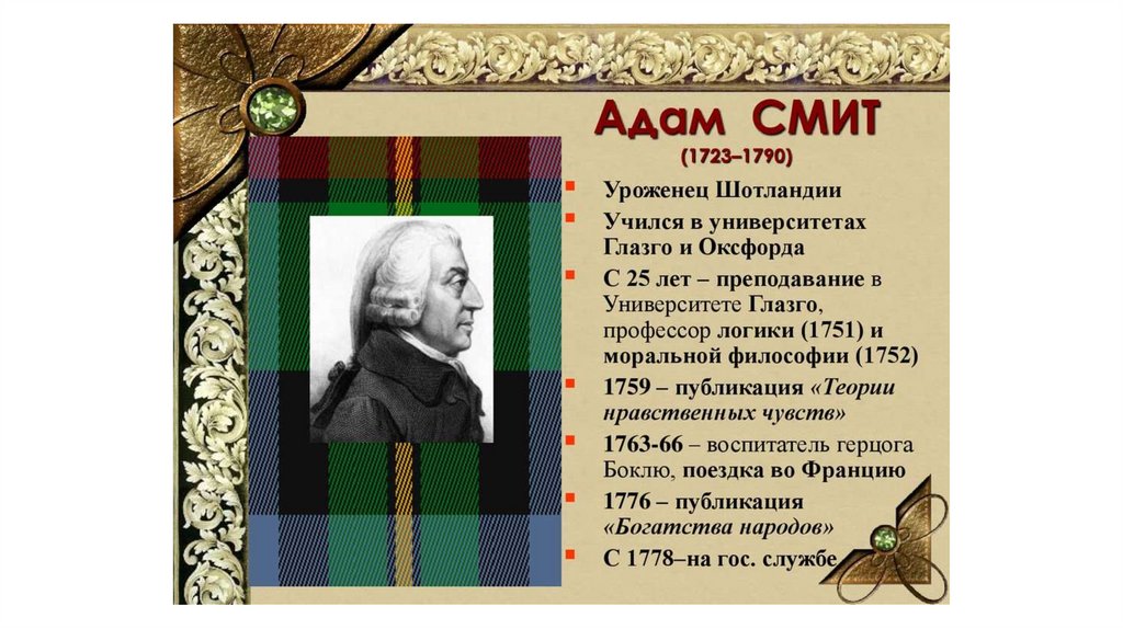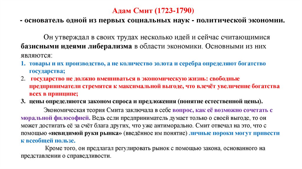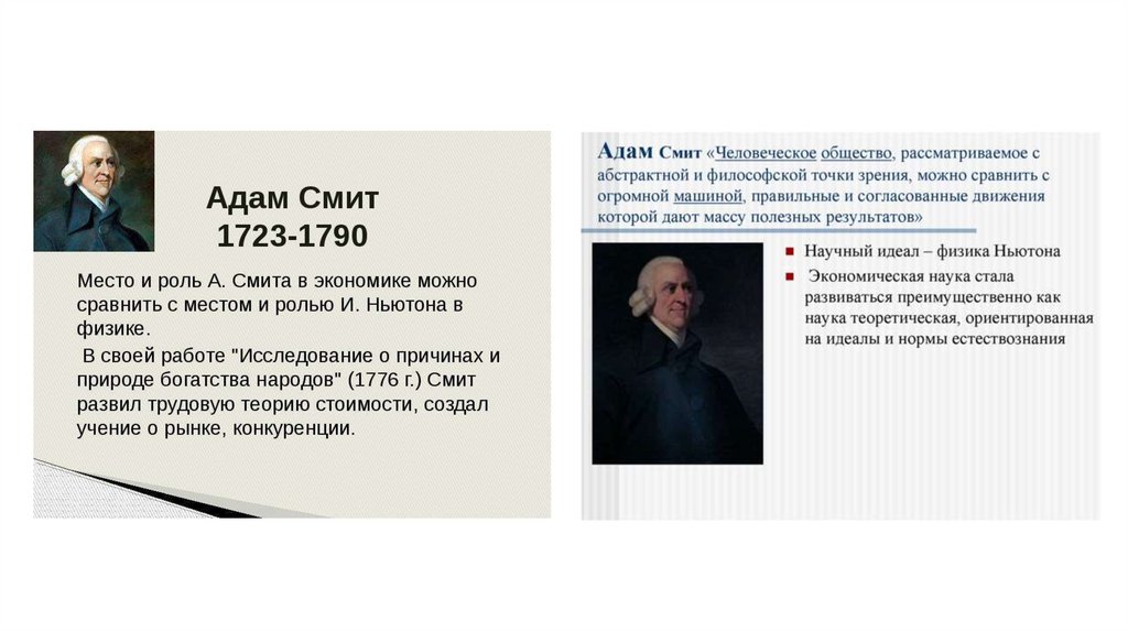 Адам Смит (1723-1790)- основатель одной из первых социальных наук - политической экономии.