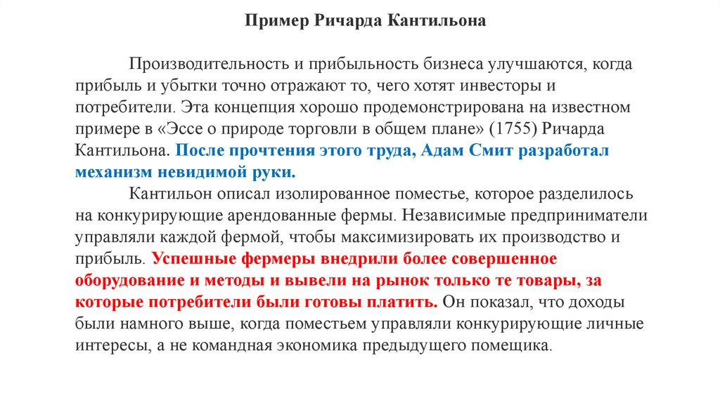 Пример Ричарда КантильонаПроизводительность и прибыльность бизнеса улучшаются, когда