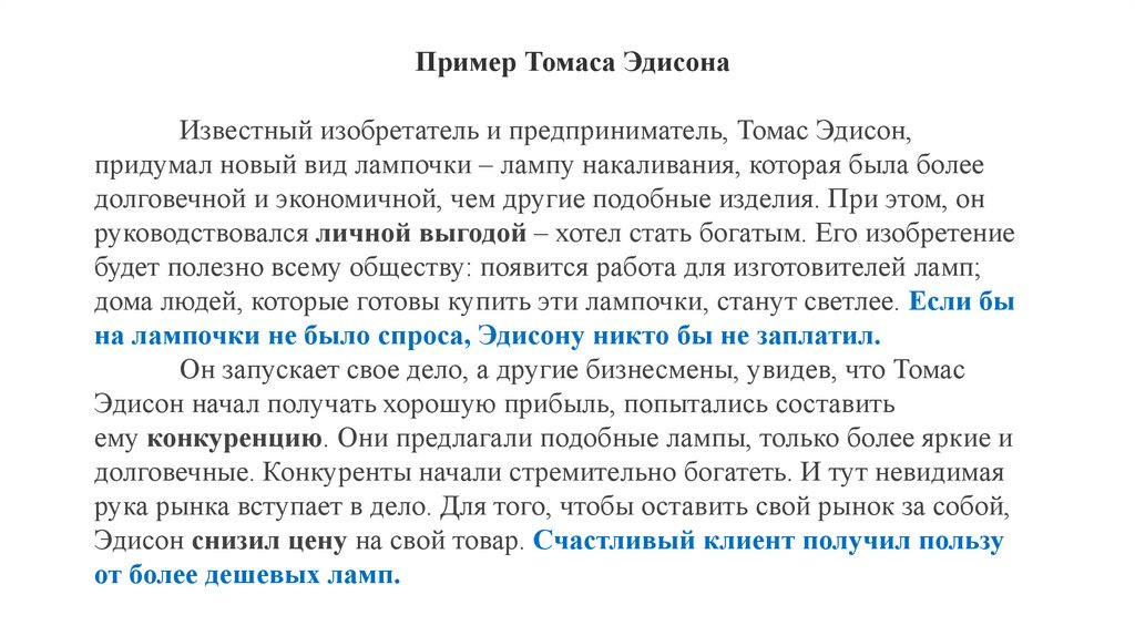 Эдисон снизил цену на свой товар. Счастливый клиент получил пользу