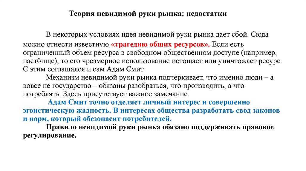 Теория невидимой руки рынка: недостаткиВ некоторых условиях идея невидимой руки рынка дает сбой. Сюда