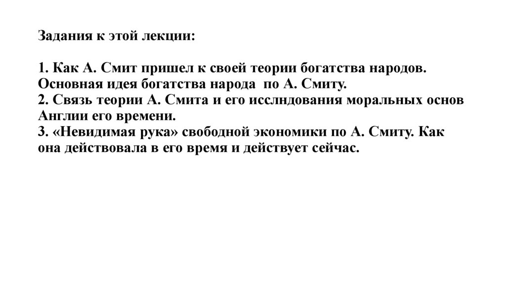 Задания к этой лекции:1. Как А. Смит пришел к своей теории богатства народов.