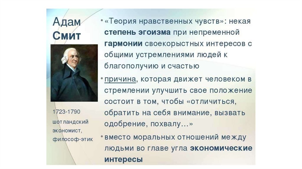 Экономическая теория Смита заключала в себе вопрос, как её возможно сочетать с