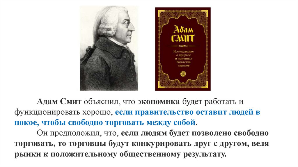 Адам Смит объяснил, что экономика будет работать ифункционировать хорошо, если правительство оставит людей в