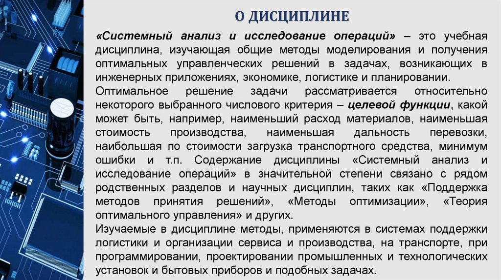 О ДИСЦИПЛИНЕ«Системный анализ и исследование операций» – это учебная
