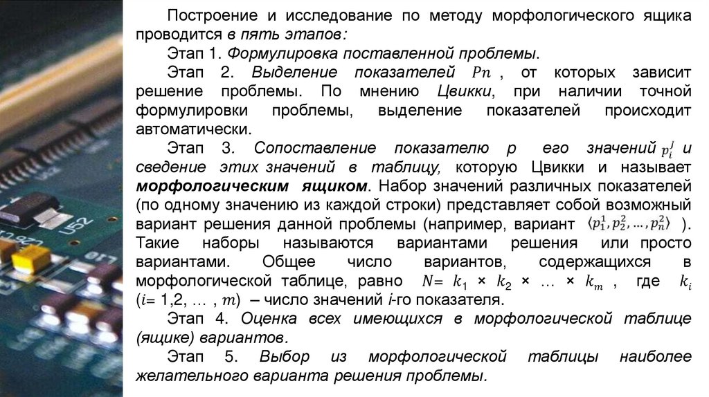 Построение и исследование по методу морфологического ящикапроводится в пять этапов: