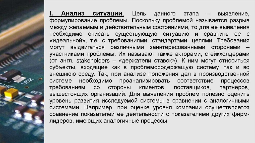 как минимум, выяснение причин её возникновения, системный анализ