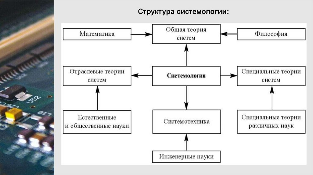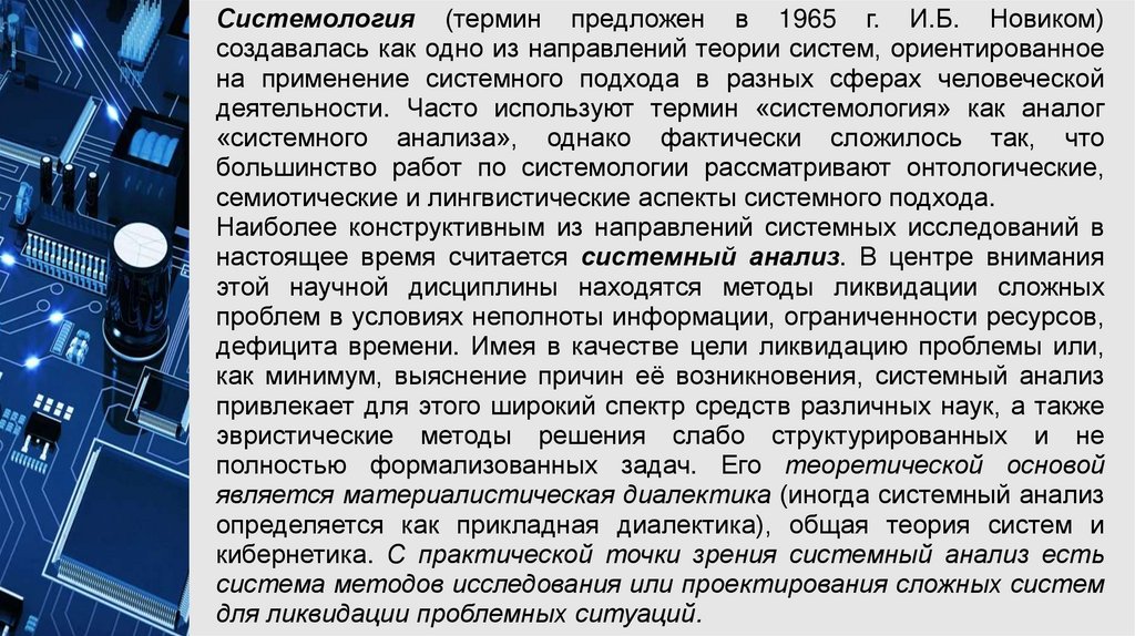 Системология (термин предложен в 1965 г. И.Б. Новиком)создавалась как одно из направлений теории систем, ориентированное