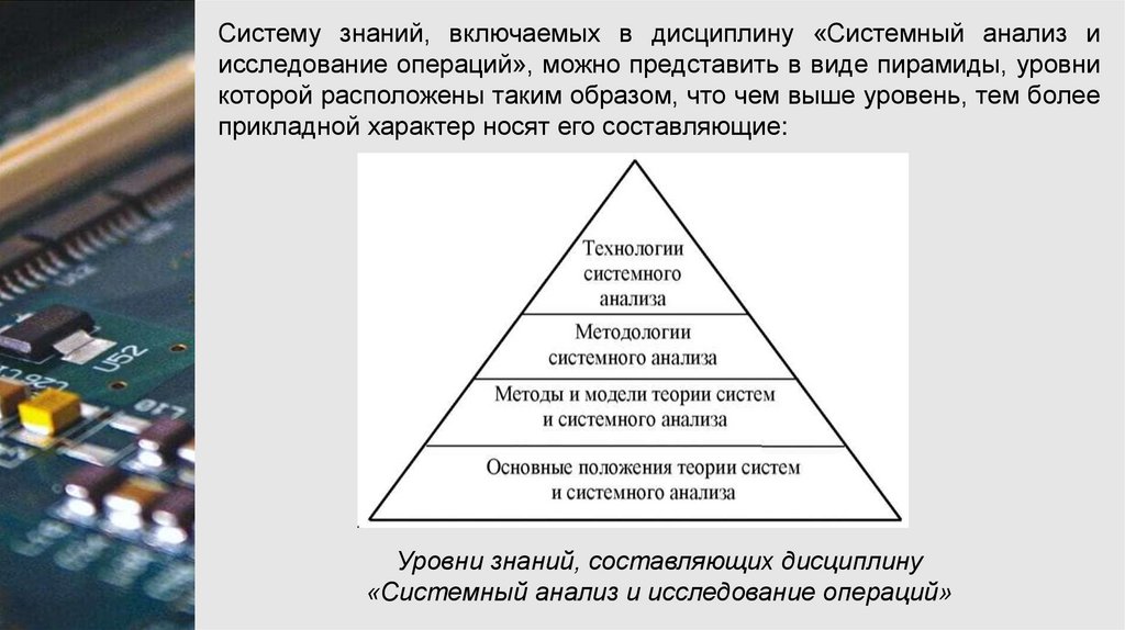 Систему знаний, включаемых в дисциплину «Системный анализ иисследование операций», можно представить в виде пирамиды, уровни