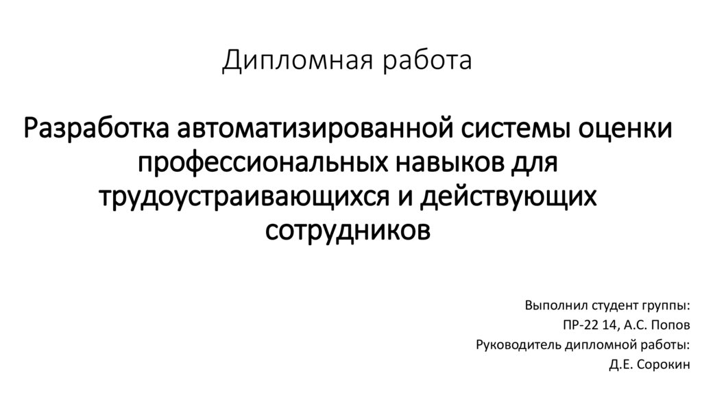 1. Дипломная работа Разработка автоматизированной системы оценки профессиональных навыков для трудоустраивающихся и действующих