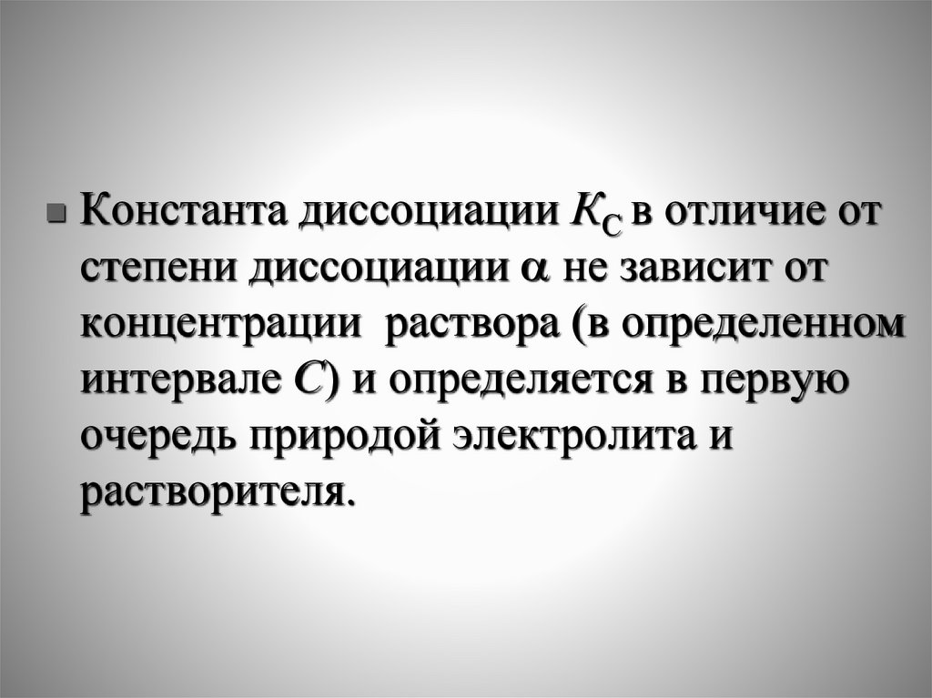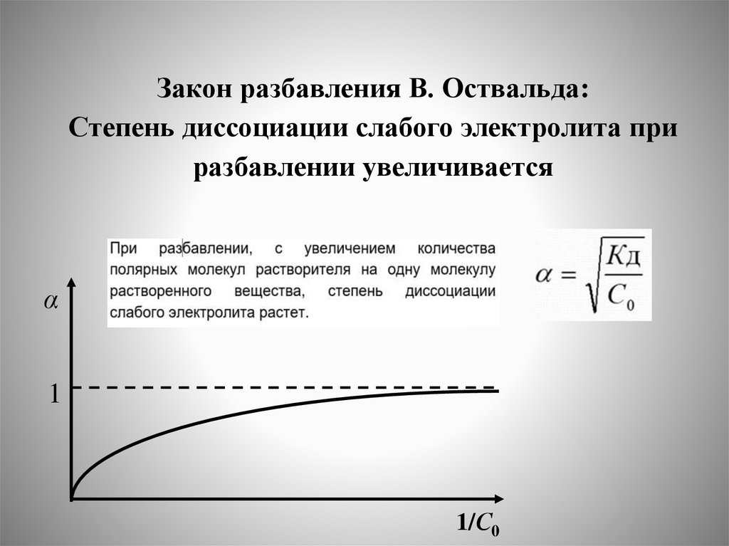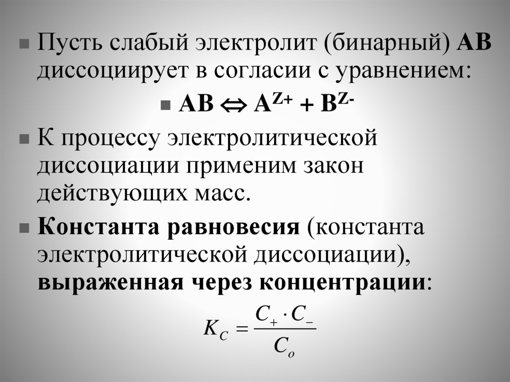 Константа и степень диссоциации слабых электролитов. Закон разбавления