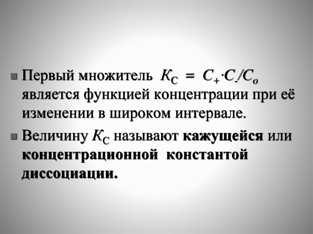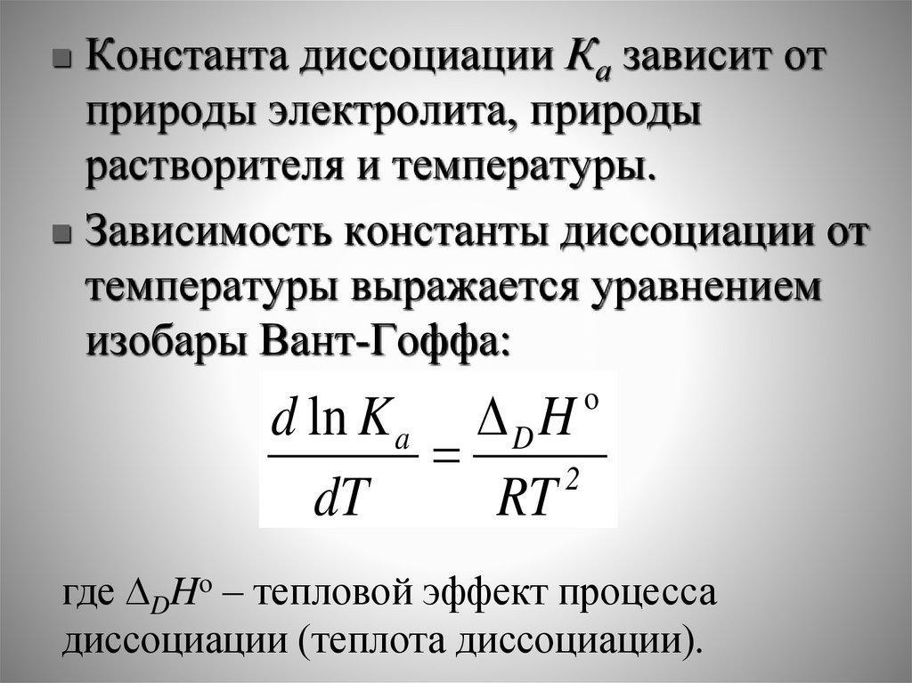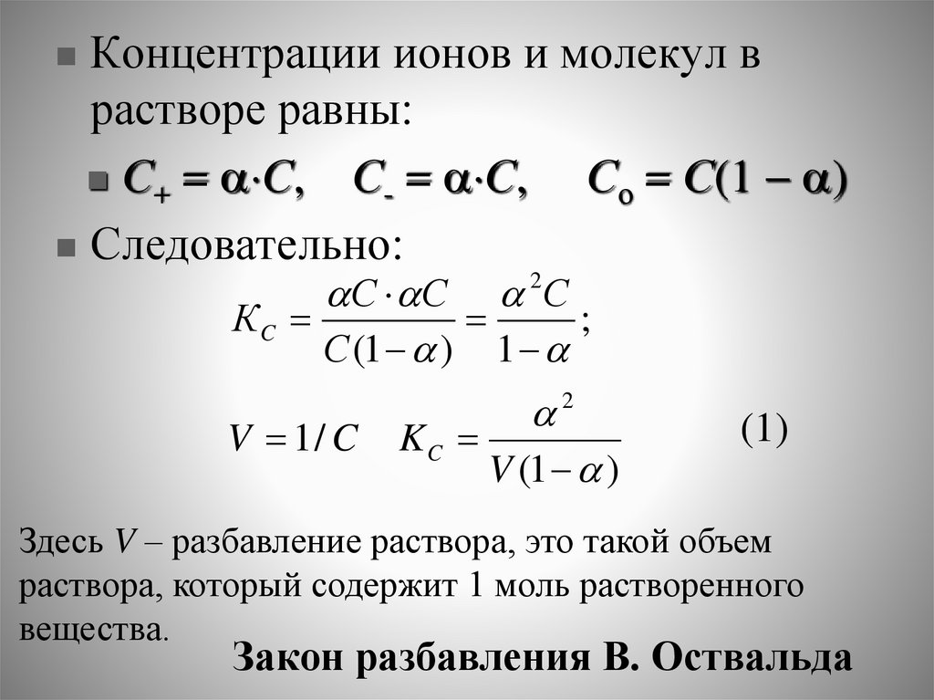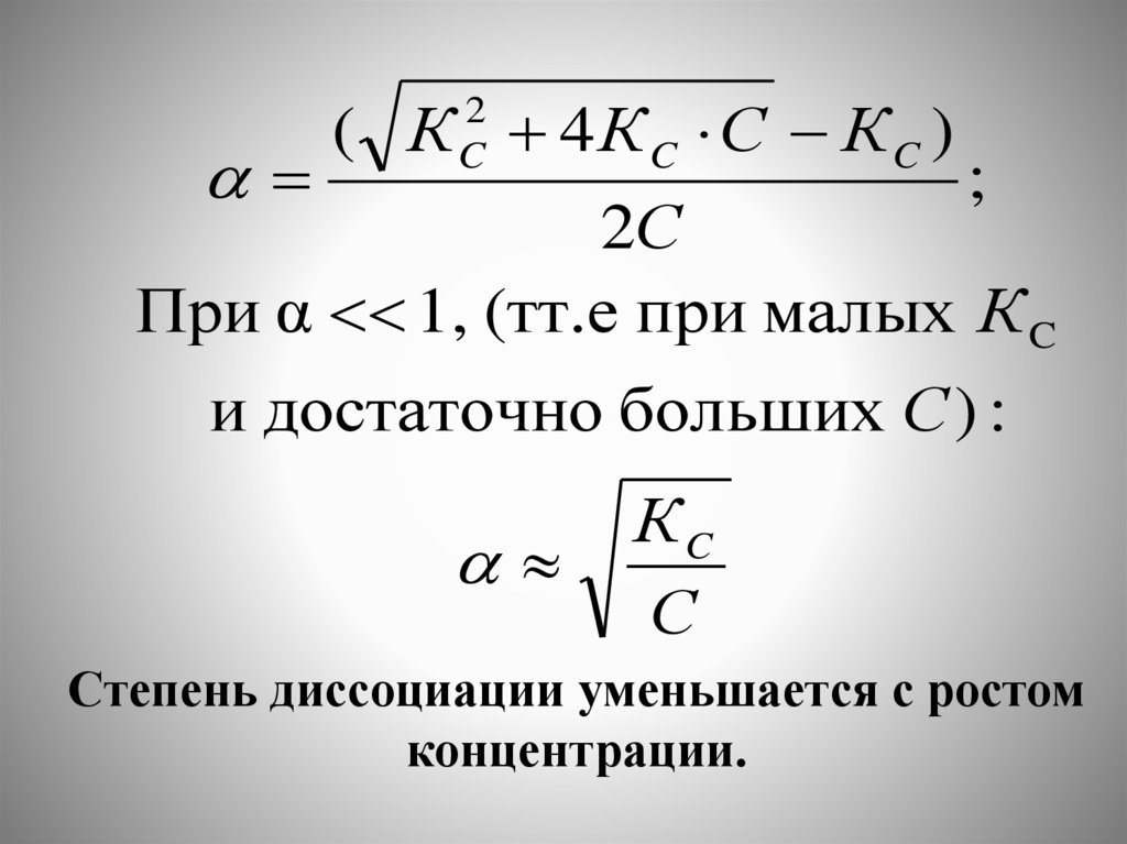 разбавления В.Оствальда. Смещение равновесия диссоциации